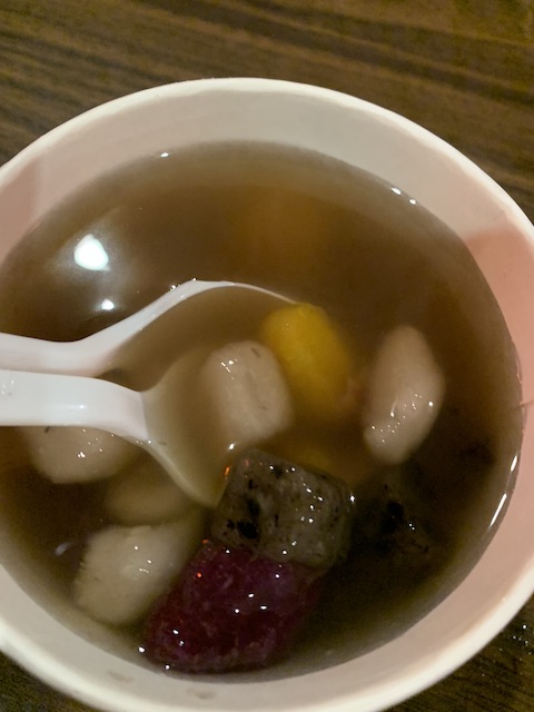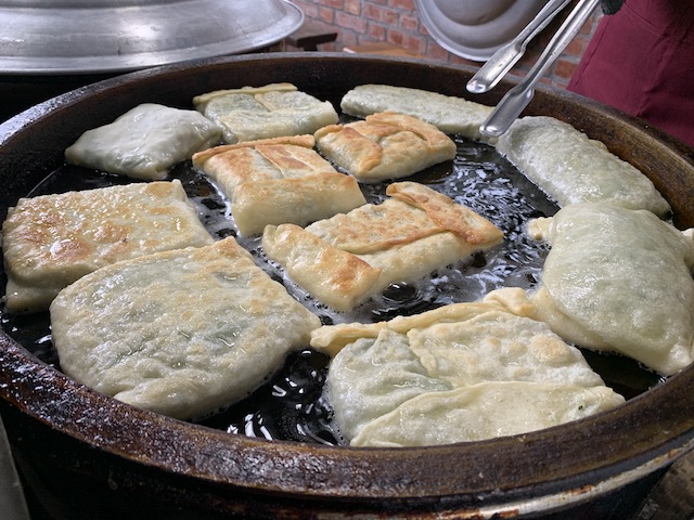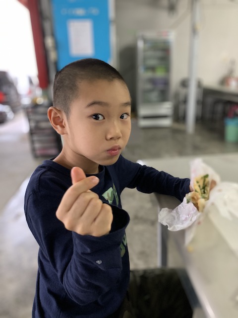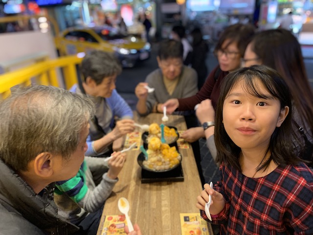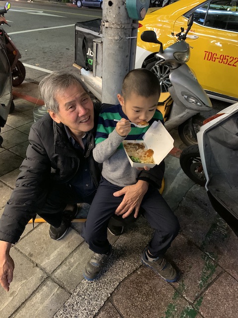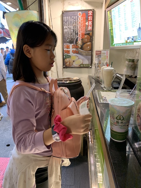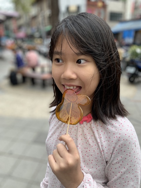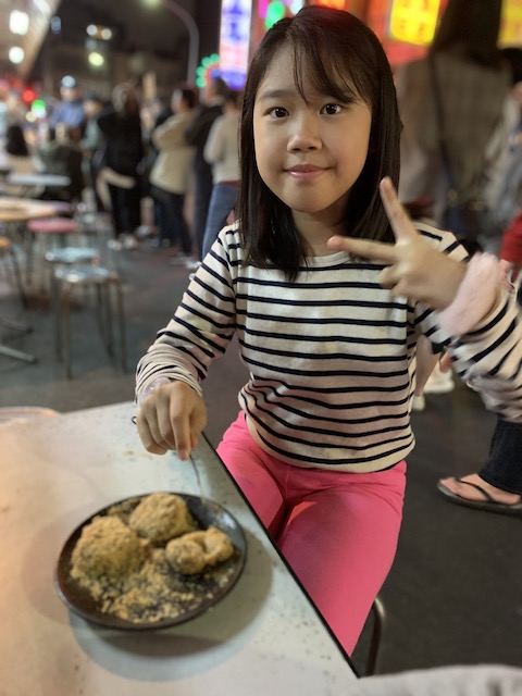在台湾品尝各种道地的美食和小吃,麻糬、汤圆、芋圆、蚵仔面线、姜母鸭、胡椒饼,还有皓皓亲手制作葱油饼。皓皓居然把整个葱油饼吃完。