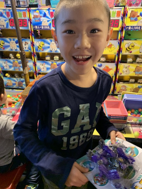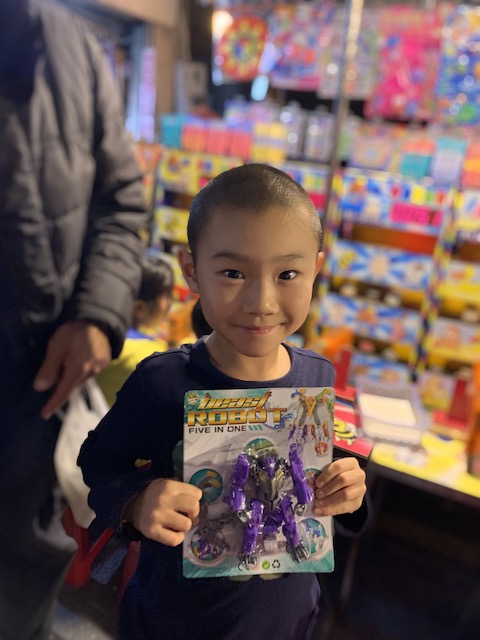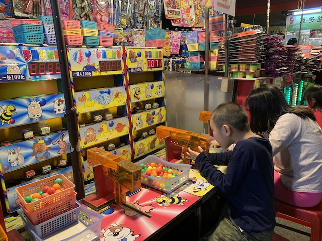 我们去九分十分,放天灯。不过,皓皓最喜欢逛夜市,因为可以在夜市玩涉枪,然后换礼物。