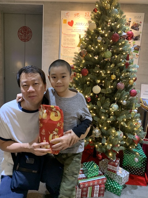 圣诞节当天,皓皓和沁芝就是圣诞老人。送礼物给公公姨姨婆婆还有daddy