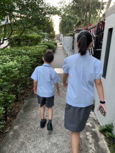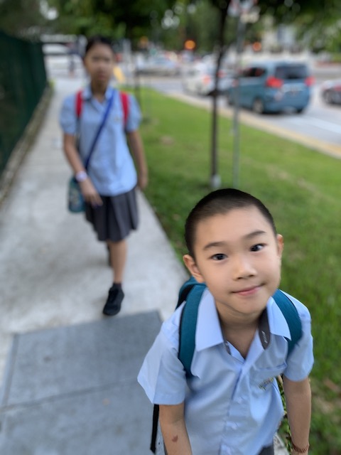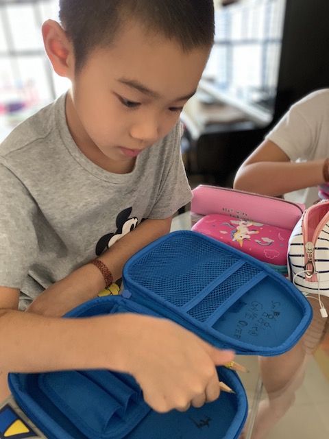 接着准备开学。整理书包铅笔盒,上学第一天,带沁芝皓皓搭巴士上学,接着好几次,都是走路上学
