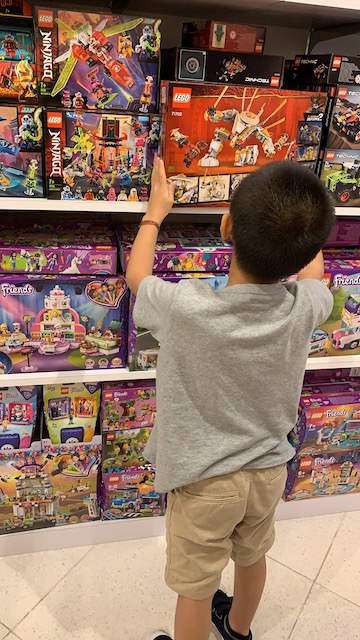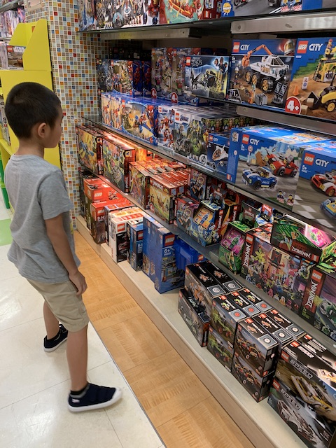 皓皓很希望有Lego,自己玩的很好,会创作各种各样的Lego。这一天带皓皓去逛公司,去了Isetan、Tangs、Robinsons,让皓皓看喜欢的Lego。但是没有买。只是把喜欢的传发给庚延舅舅。