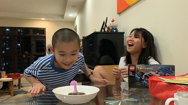 放学回来,你迫不及待就组装,没两下子就已经把两个小的Lego组装完毕。然后问皓皓想吃什么,皓皓说是hotpot,于是我们去!等待的当儿,皓皓说想打电动。本来不允许,后来想想,生日这一天,就让皓皓圆梦。