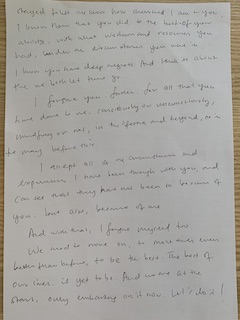 Before you sit down to write, cleanse yourself of negative emotions towards this person. If you still have resentment or anger, you can separately write down all these feelings for them on paper and then burn or tear the sheet to shreds.