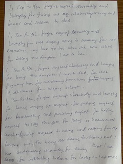 For each line on your list, write a text of forgiveness based on examples below: