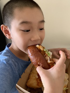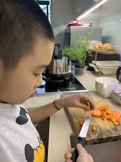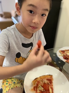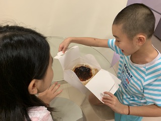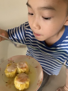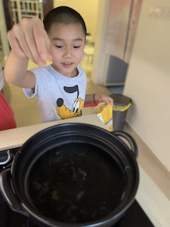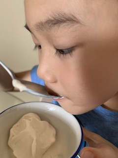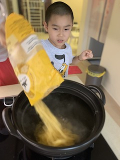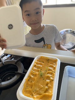 The kids cooked and cooked and cooked. I felt that it would be good to have them feel food. Huaihao made dairy free ice cream. He cooked pasta one by one, and had so much fun!