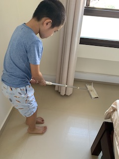One day I tasked him to cleaning the floor and to be aware that he is cleaning the floor as he works