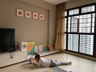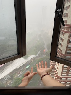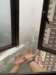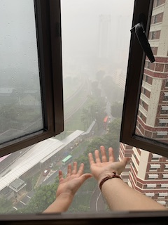 One day it was raining so heavily, I took the chance to experience rain again its Huaihao and asked him to put his hand out to feel the cool droplets. We used to do that, I sed to carry him as a baby and to hold out his hand whenever it rained.