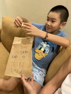 On another day, Mommy decided to challenge the kids. Every night I would announce the challenge for the next day, such as 2 kind acts, 3 things you are grateful for and let the kids write or draw or do show n tell to express, there has to be rewards of course! And this is hao drawing out his win!