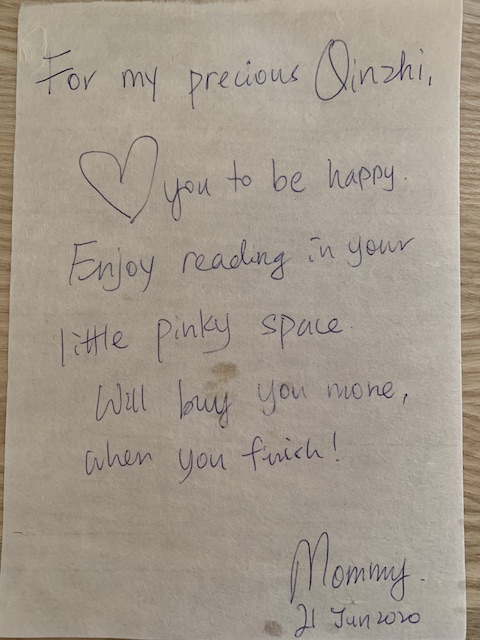 I look back at the days when we tried so hard to get you to be in your own room. But it seems you are ready now. And this is coming from a space within. You are so much more powerful now Qinzhi.