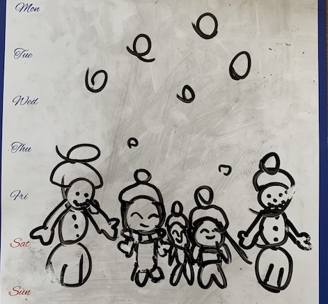 Huaihao drew lots, like this is huaihao with qinzhi and mommy in snowy land. Inside , are you yearning for a winter holiday? We have had a few, once in winter in Korea, and you were coughing so hard. Then in Japan. It snowed on Cradle mountain in Tasmania too.