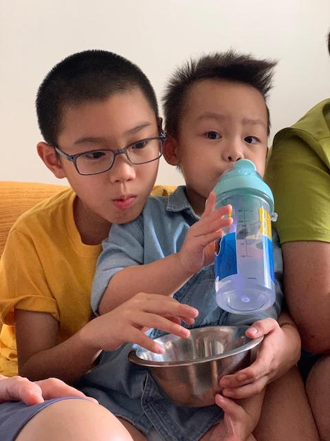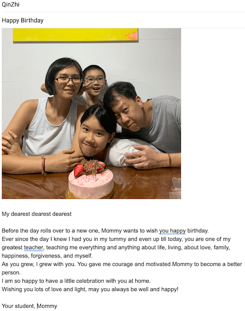 然后沁芝皓皓给daddy mommy拜年,mommy光是听、拍都感动。换皓皓给mommy拜年,居然流下来泪水。跟皓皓说,那是感动!因为皓皓出生才51公分,不知不觉,在给皓皓冲凉、煮粥都日子变成了煮饭的日子,皓皓现在都不需要mommy给他冲凉了。有些时光就是这样———回不去了。才想起有一段时间,皓皓一直要mommy帮他冲凉,mommy还有些不耐烦。现在换mommy想为皓皓冲凉,都不晓得皓皓还让不让mommy进冲凉房呢。