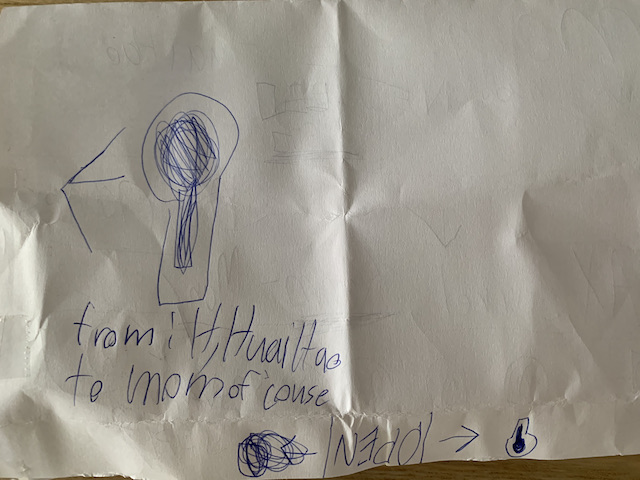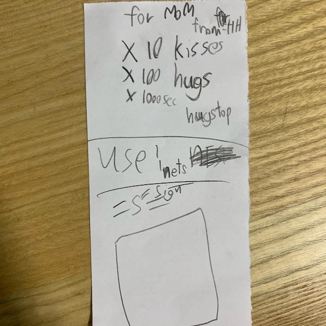 最喜欢收皓皓的纸条。有时要皓皓按摩。他就会赠这样的收据。