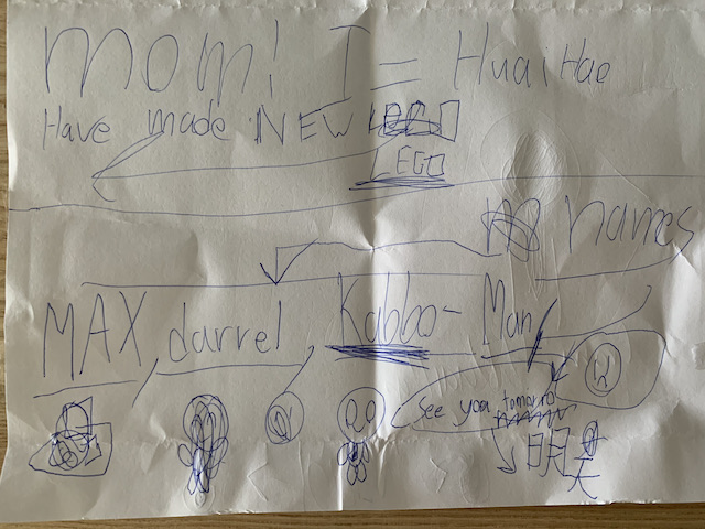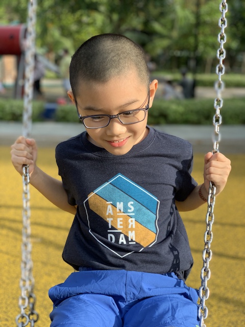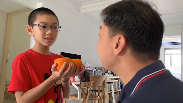 有一天放学回来,皓皓说被同学揍肚子里,嘟起嘴说哭了,然后说同学的姓氏是annoying,可爱极了。另一天,皓皓在做功课,碰巧问的是皓皓的名字,mommy说皓皓的名字就是光。