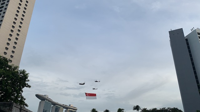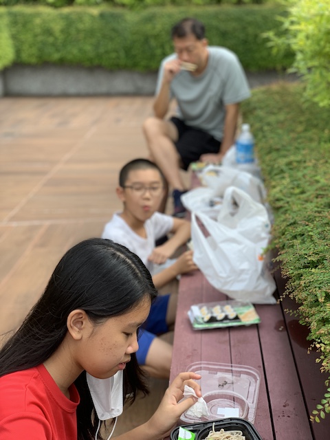 national day this year was postponed from aug 9 to 22 , and we went out early for a morning walk to marina area, daddy brought the kids to do a virtual game and we stayed out the day to catch the jets and fireworks. because we were not vaccinated, we couldn’t eat at restaurants, but we ate anyway, we took away meidi-ya bentos and sushis and ate out in the open before locating a nice spot to catch the jets and flypast of the singapore flag.