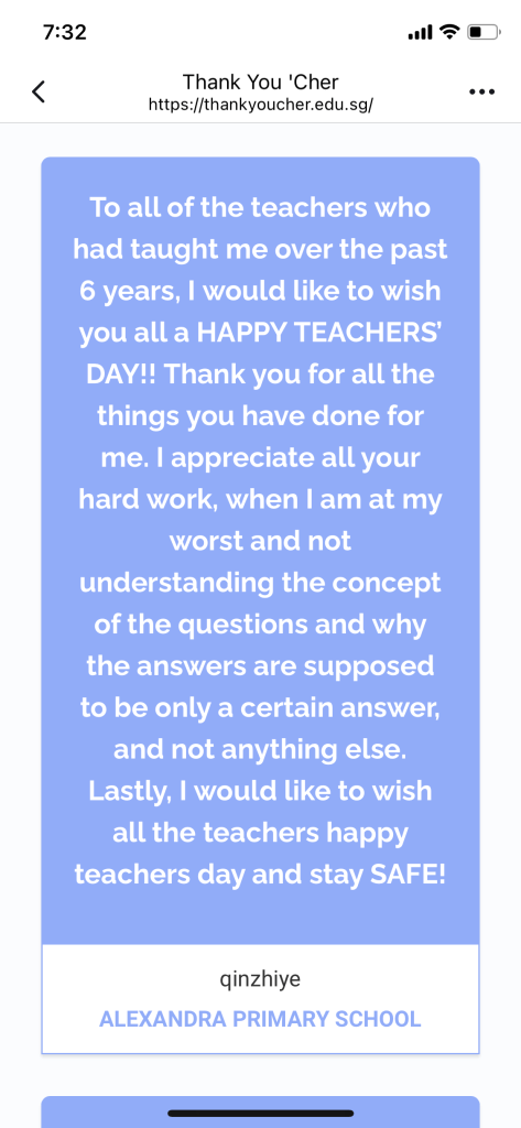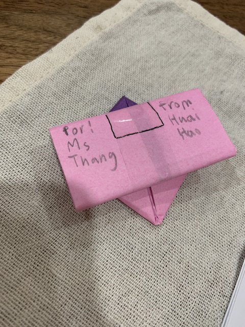 Teacher’s Day this year and Huaihao made cards for his teachers, most of all, Ms Thang whose class he loves