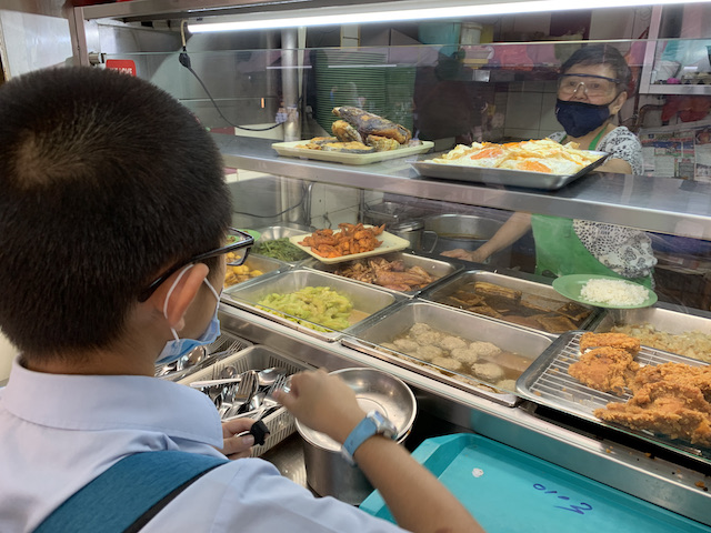 One day, i had the chance to pick him at school and head over to redhill to pick up lunch, mixed rice which he picks himself and misses. He used to eat this at redhill, his favourite and would pick his own side dishes.
