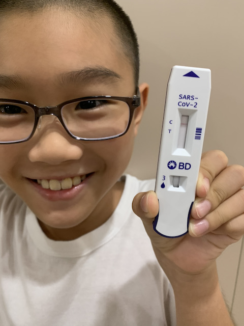 Due to rising incidences of covid, the kids were given ART test kits and he had the chance to try one