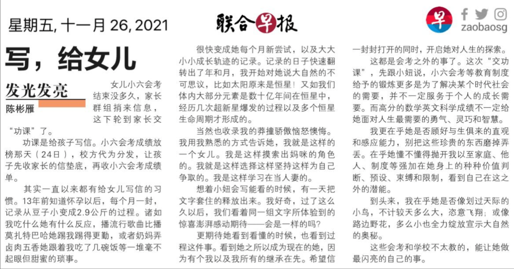 Mr Ng said to me: “you have always shared with me what other people say, what about you? What is your story? I want to hear your story. You should be in the frame.”