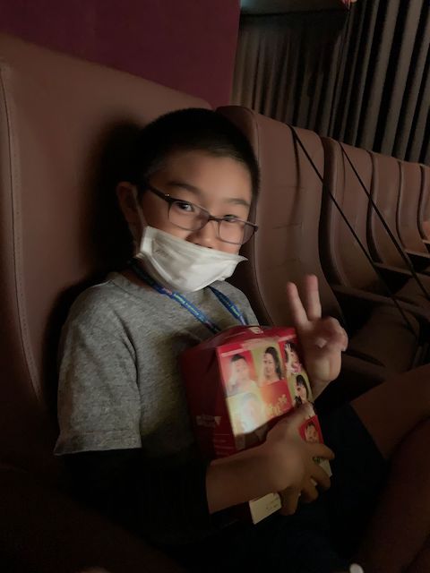 And one day before Huaihao’s birthday, ah mei ah yi brought huaihao to the movies to watch spiderman and the treat was complete with popcorn of course ! ANd the present gengyan jiu jiu brought, huaihao kept it till his birthday to open it.