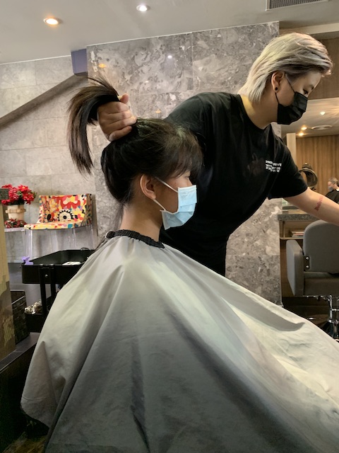 The holiday flew by in a blink and its time to prepare for school. And prepare we did , first by trimming the tresses. And Qinzhi is now more open to trimming and she actually liked the hairdo.