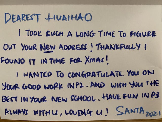 Then Christmas came. Huaihao asked if Santa Claus would know our new address. And if Santa was daddy.