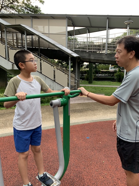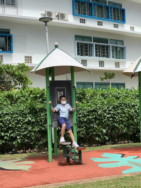 Typically after school, Huaihao would run to play at the fitness corner before we pop up