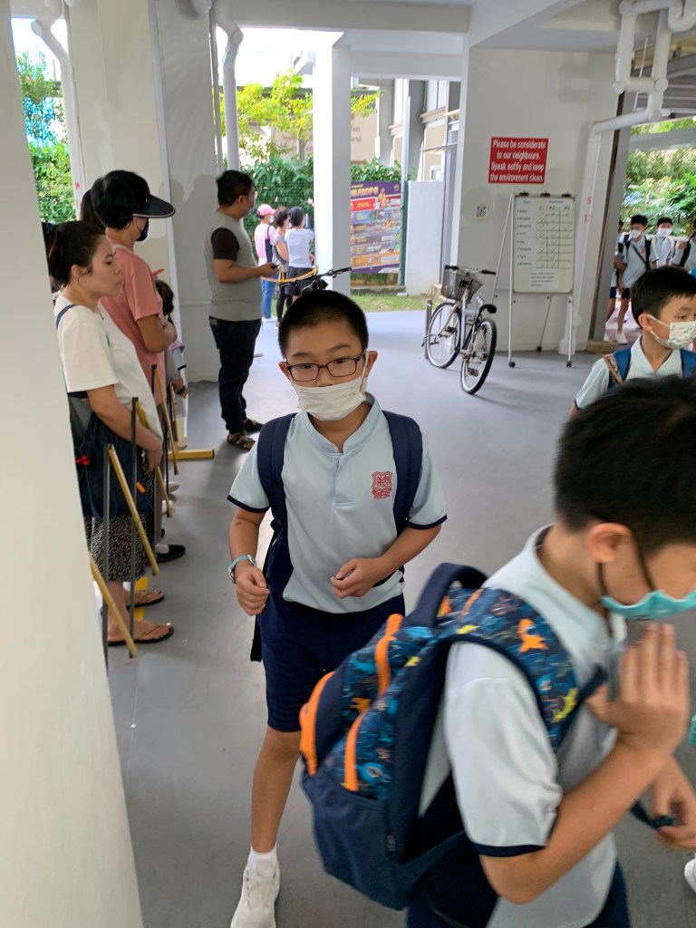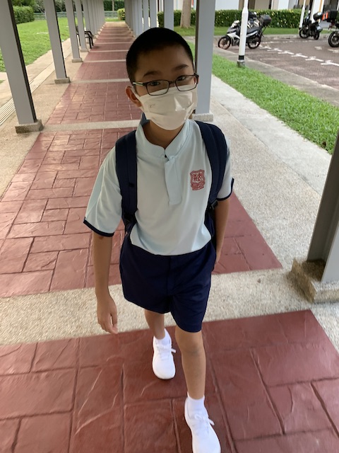 And this is huaihao coming back from school. On the first day of school, huaihao threw a tantrum and didn’t want school because the uniform we got was too big. He was crying and said that even I can fit into the uniform. He said in crying, “ you just want to save money! But I don’t look nice! People will look at me!”