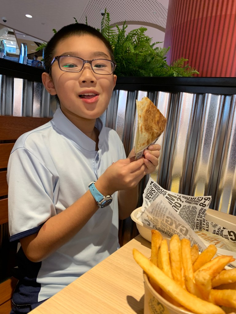 This day I took huaihao out to get a doctor’s letter to arrive at support for non vaccine . It was great one on one time with huaihao and he wanted a fish burger. So we had one!