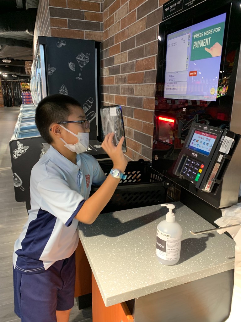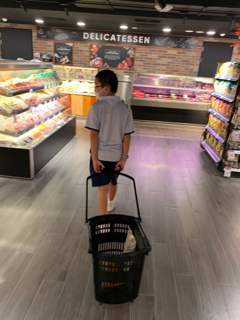 On Fridays, qinzhi has extra curricular activities and would be home late. I take huaihao out for lunch after school for some precious time with him . This time, we headed off to a new mall where huaihao had quesadilla! Then we did some shopping at the supermarket. Huaihao helped of course!