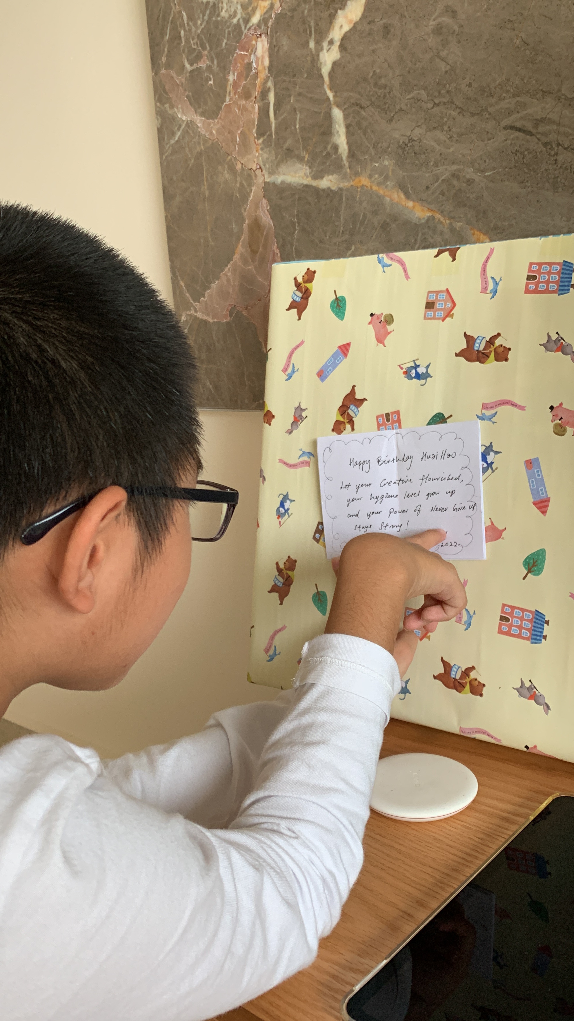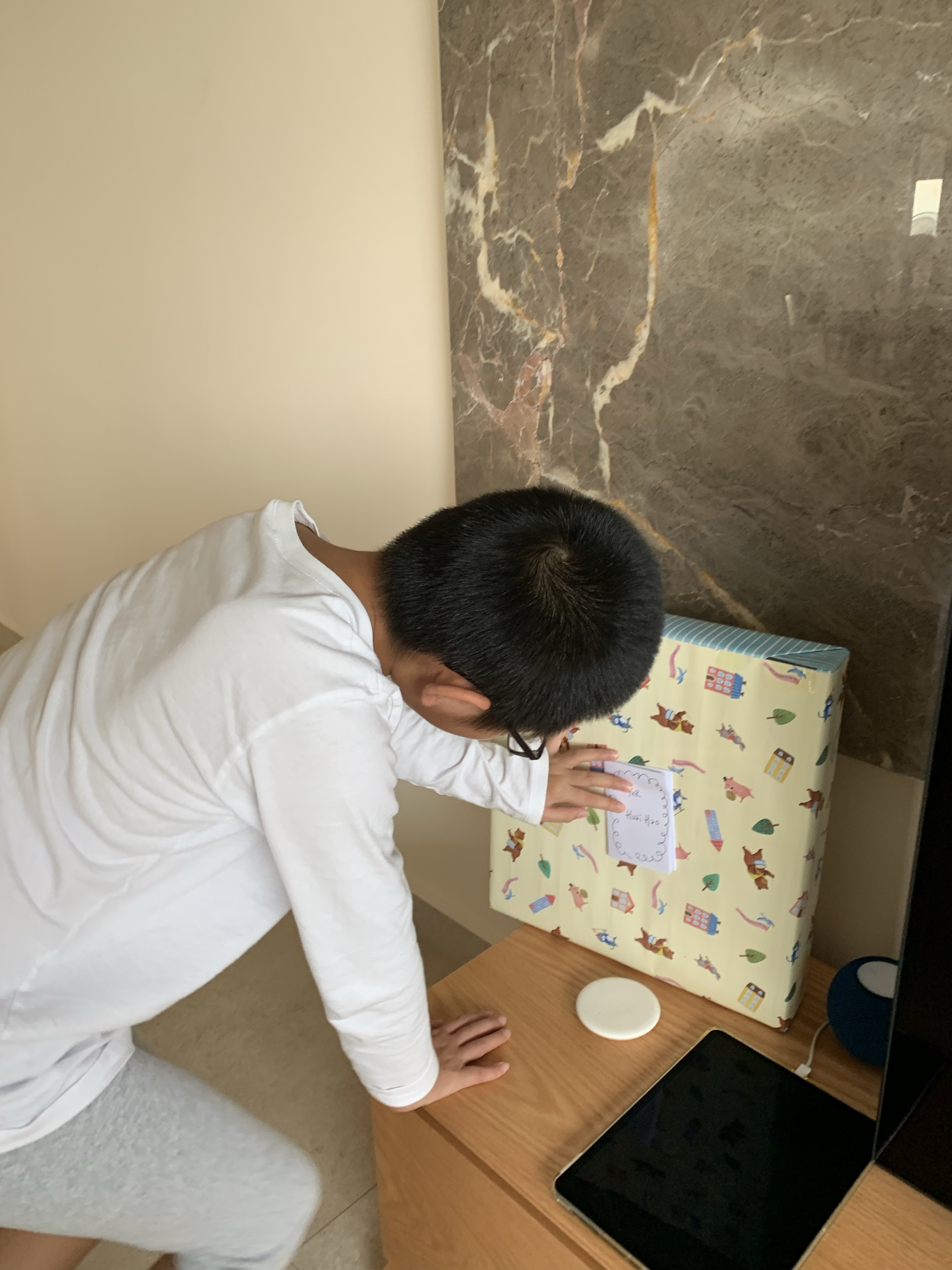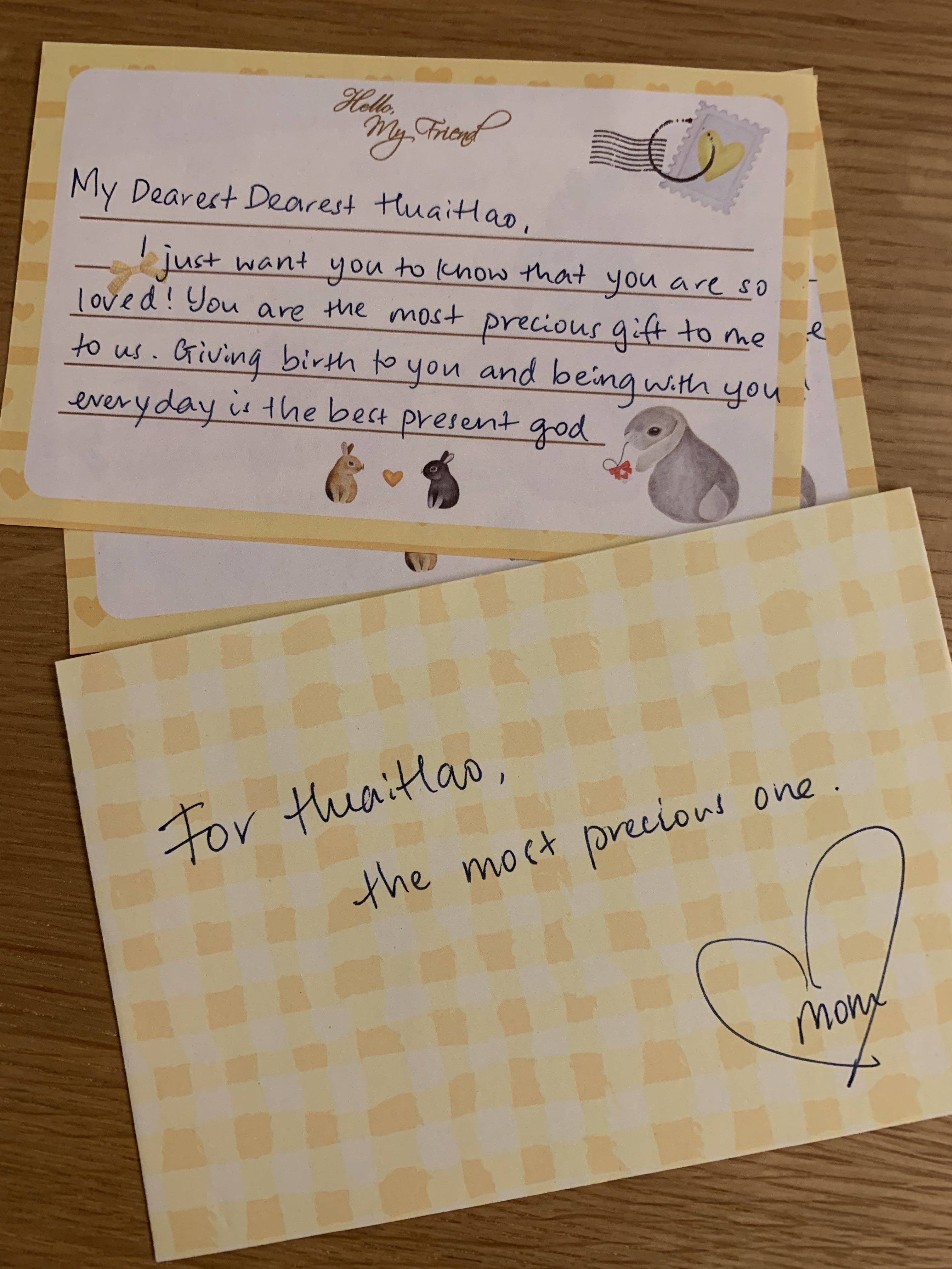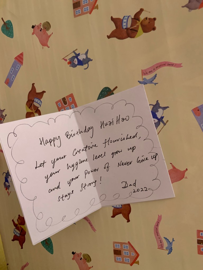 And jie has prepared a present for you. So has dad. And mom wrote you a card.