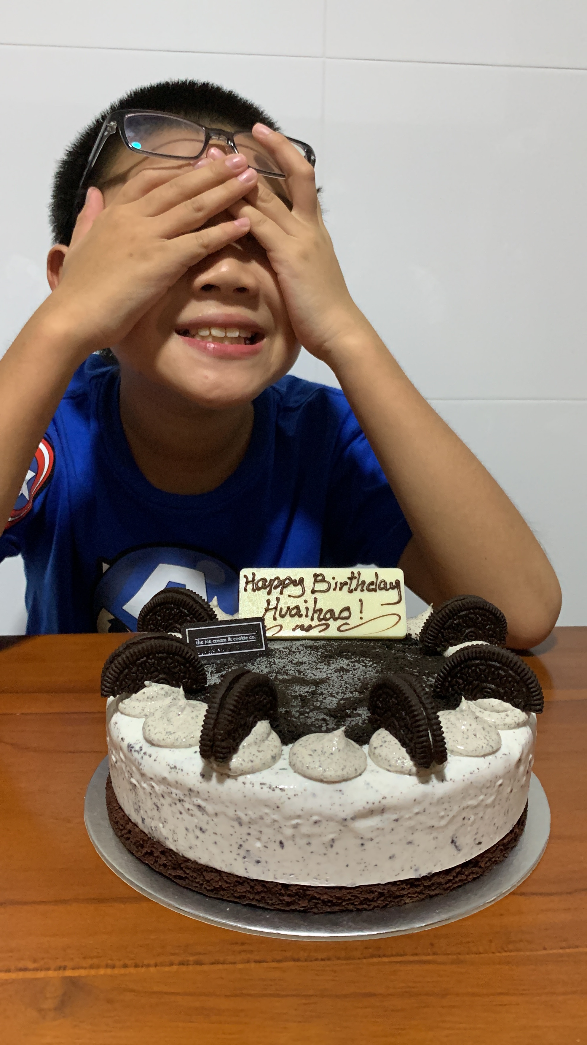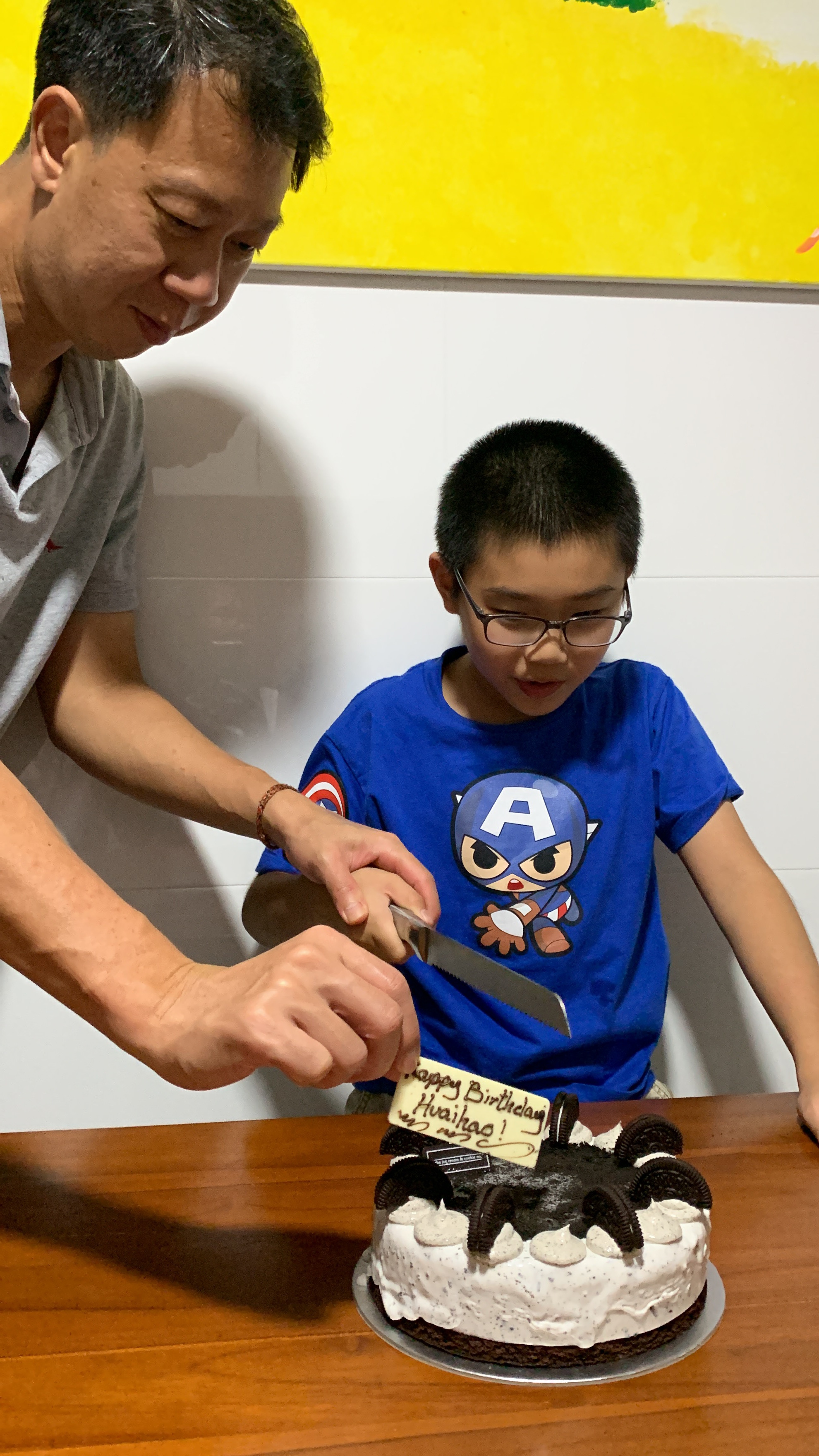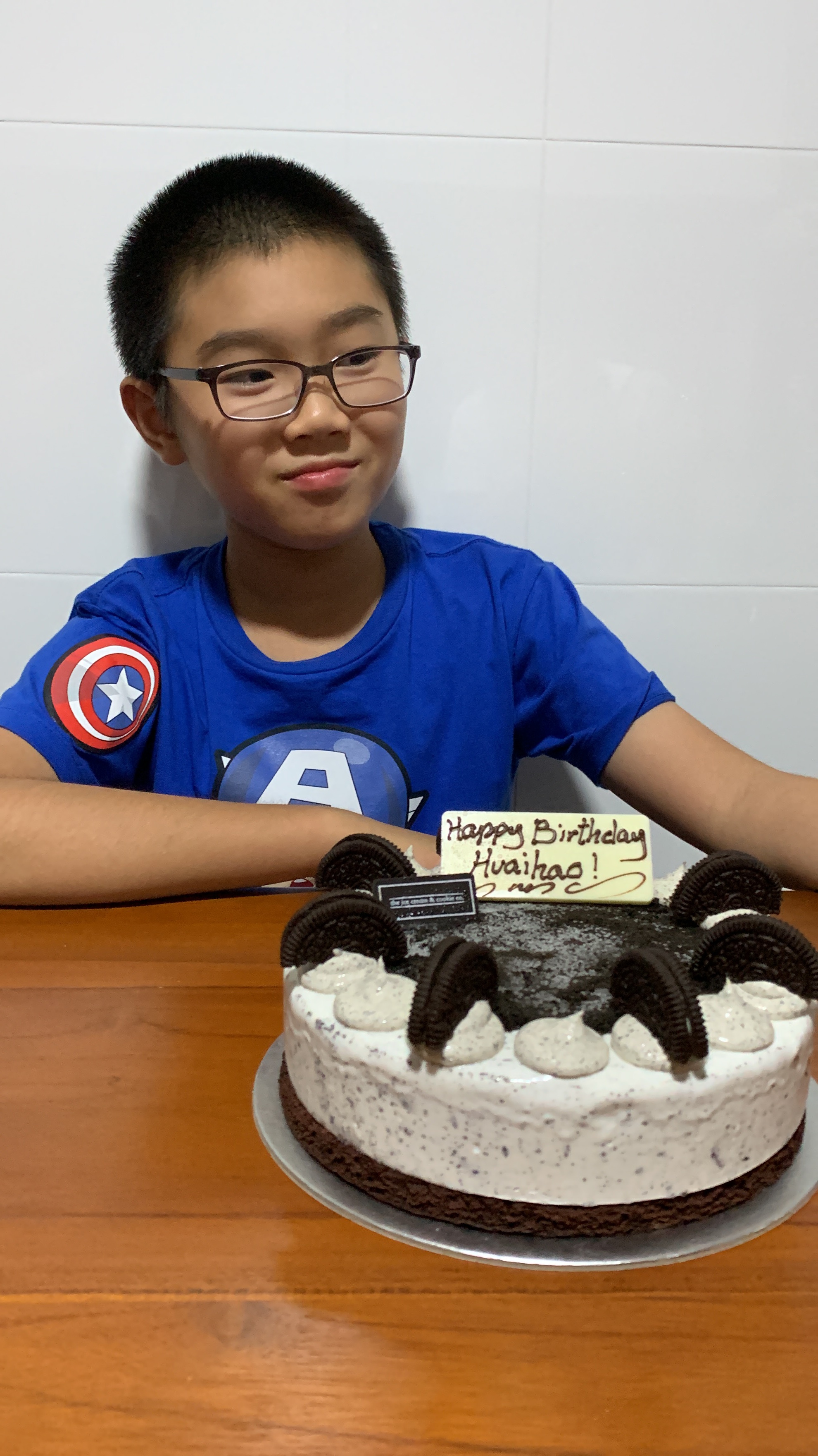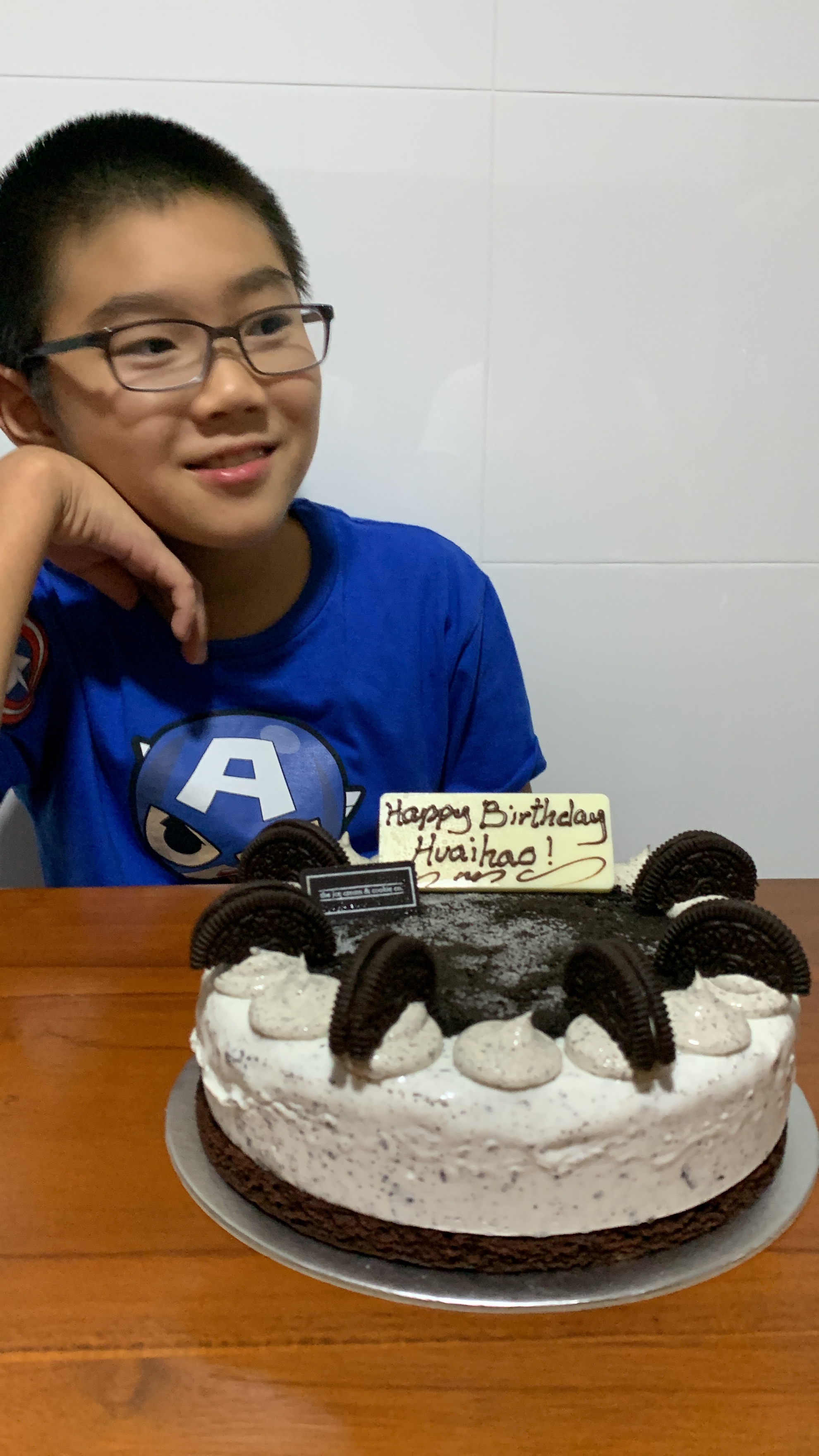 After that we headed over to grandpa’s. Gengyan jiujiu and Karyn jie jie came over to wish you happy birthday then we had Italian food, as you asked for for dinner . Then we had another cookies and cream ice cream cake