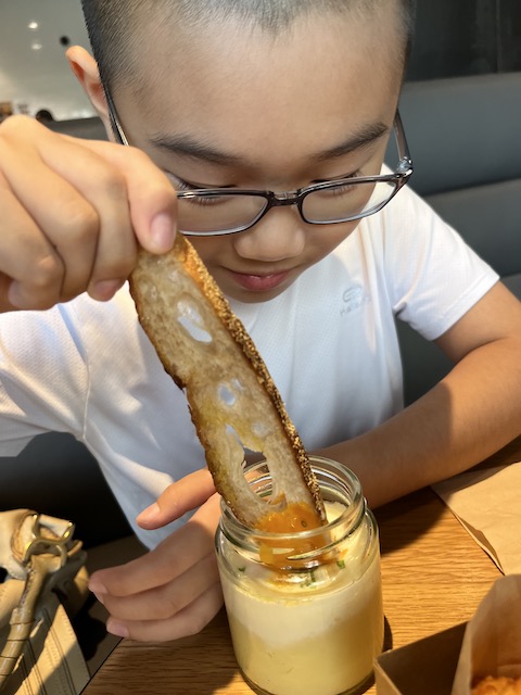 And mommy treated the kids to Eggslut. And Huaihao is a fan now.