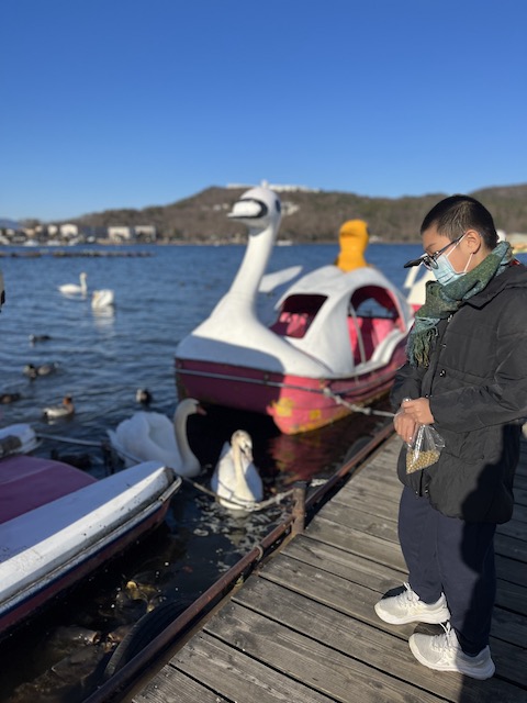 We then went off to Lake Ashi and Huaihao is adamant at finding more ducks to feed!