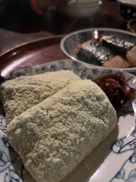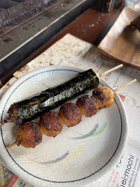 The menu is said not have changed. Like the handmade isobe (soy sauce) and uguisu (sweet young soybean powder) mochi, a glutinous rice steamed and pounded into a paste by a wooden pestle then toasted by charcoal. Miso Oden (a warm konjac steeped in miso) and Tokoroten, seaweed and sesame topped agar agar strips in a refreshing vinegary sauce. Wasabi on the side added so much sophistication to the flavor profile—— who would have thought!
