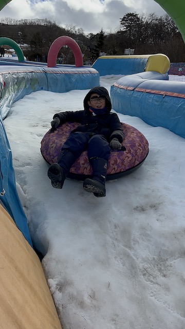 One new thing HuaiHao tried was snow sledding and tubing! Going for it again and again….he wasted no time and thoroughly enjoyed sledding