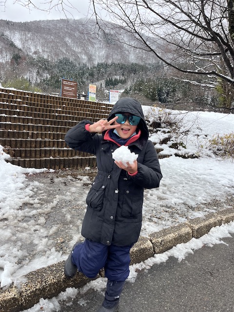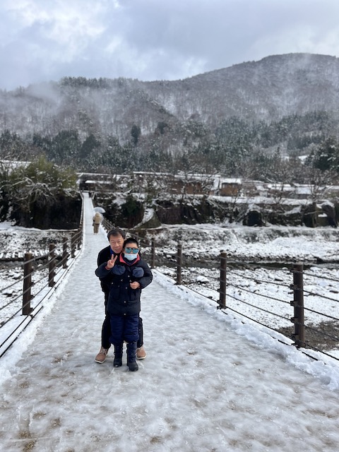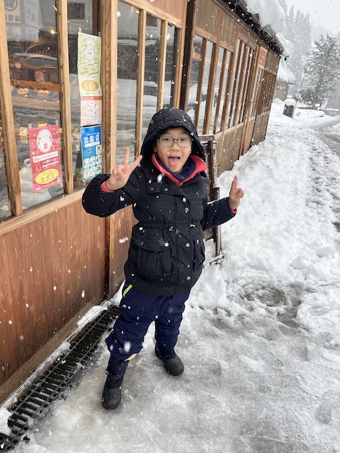 We headed over to unesco heritage sites like shirakawago and Gokayama and HuaiHao had lots of fun playing snowball throwing with daddy