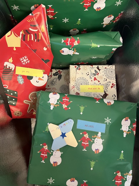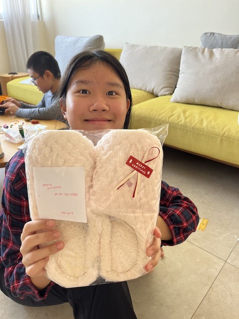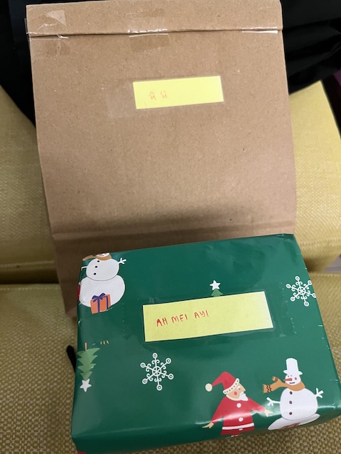Once we got back, Qinzhi got really busy with wrapping presents. In fact she was constantly looking out for gifts, and other than herself