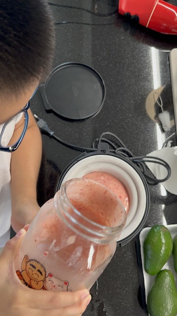 And we finally brought out our ice cream maker to make strawberry ice cream! HuaiHao was on it most and had loads of fun!