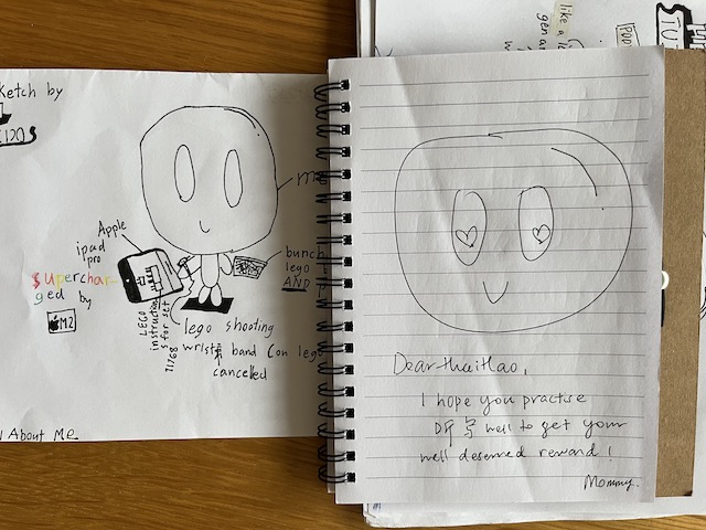 And I just had to draw like him too to write him a reminder to learn his spelling
